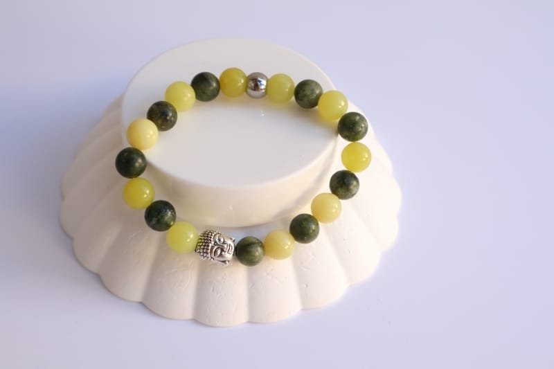 Comienza el Año Nuevo con una pulsera que inspira renovación, equilibrio y prosperidad. Elaborada con jade verde y jade limón, esta pulsera combina el poder de ambas piedras para atraer serenidad y bienestar. El jade verde simboliza la abundancia, el amor y la prosperidad, es una piedra protectora que atrae suerte y éxito, mientras que el jade limón se asocia con atraer alegría, positividad y abundancia. El separador en forma de Buda simboliza paz, sabiduría y el despertar espiritual, ayudando a alinear tus intenciones para el nuevo ciclo. Lleva contigo esta pulsera como un recordatorio de armonía y positividad para el año que comienza.